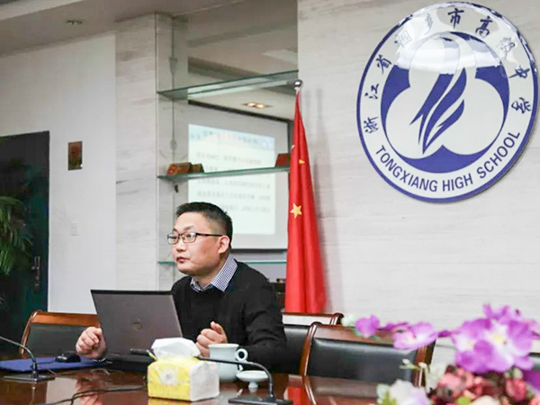 桐鄉(xiāng)高級(jí)中學(xué)陸國(guó)良校長(zhǎng)對(duì)我校一行進(jìn)行了熱情的接待,并做了熱情洋溢的講話。