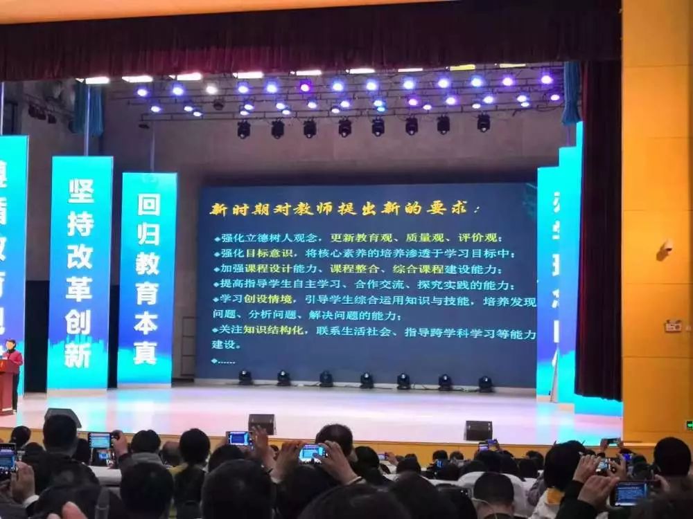 教育部基教司的專家做了關于《核心素養導向下的教學》專題報告,她從四個方面闡釋“核心素養下的教學”里面,提到“核心素養的概念”、“核心素養在學科中的體現”、“強化課程教材的育人功能”、“指向核心素養的教學改進”。最后,她對新時期的教師提出了新的要求,她希望新教師要強化立德樹人的觀念,更新教育觀,質量觀,評價觀等。